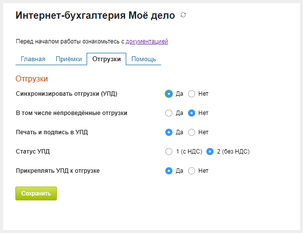 Модуль создает УПД в сервисе Моё дело для отгрузок в системе МойСклад автоматически.