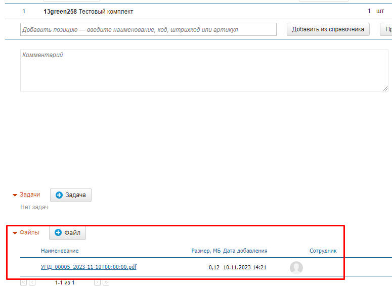 После обновления страницы УПД в формате DOC появится в разделе Файлы. Если вам нужно внести изменения в Отгрузке, повторите первые два шага.